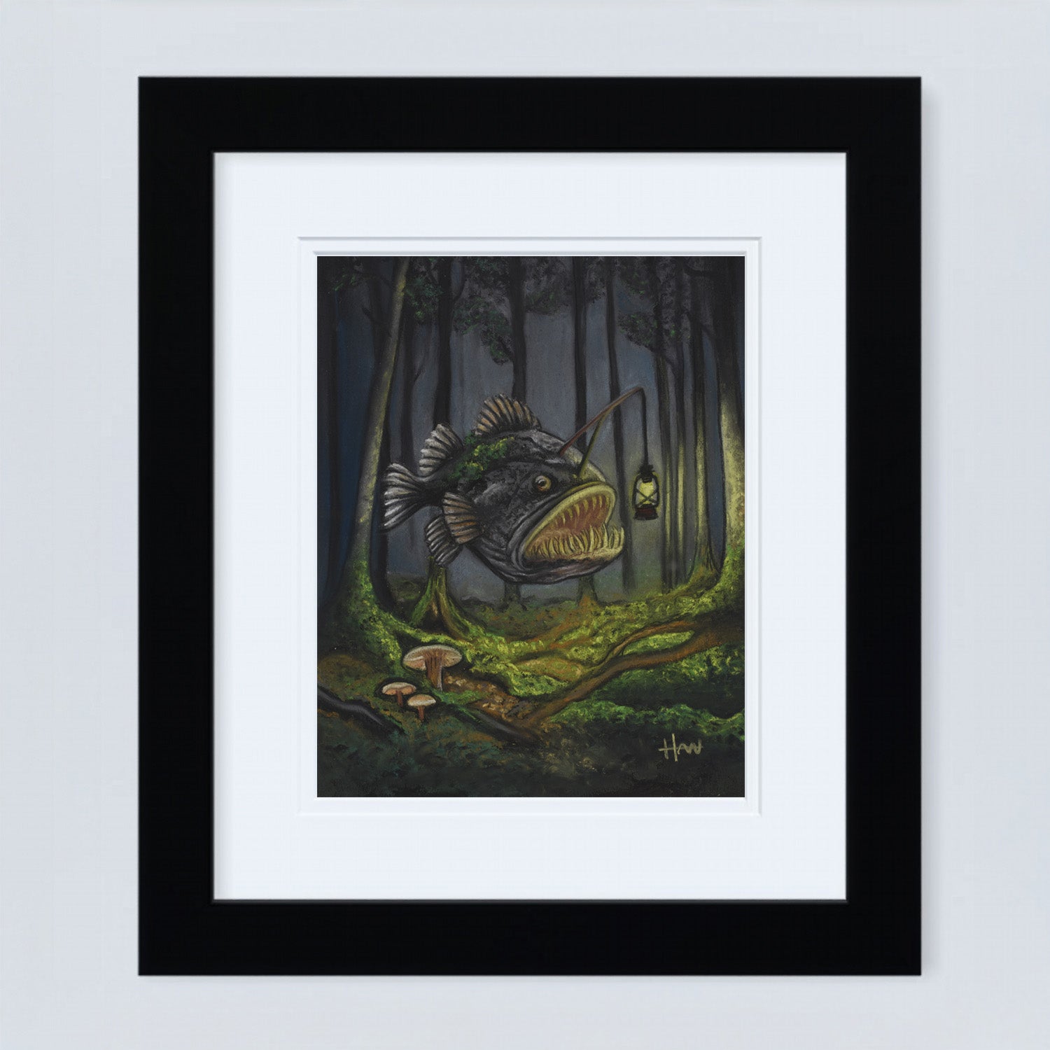 Out of My Depth places a deep-sea anglerfish in an unexpected setting, a quiet forest, guided by its own light. The contrast is intentional, blending two environments that don’t belong together but somehow feel balanced.