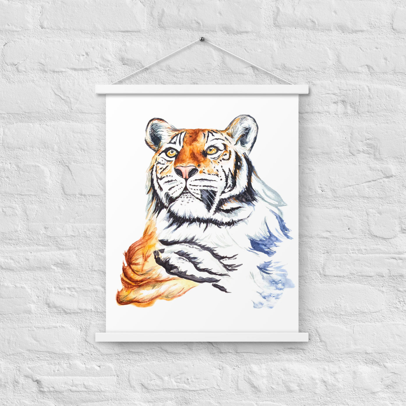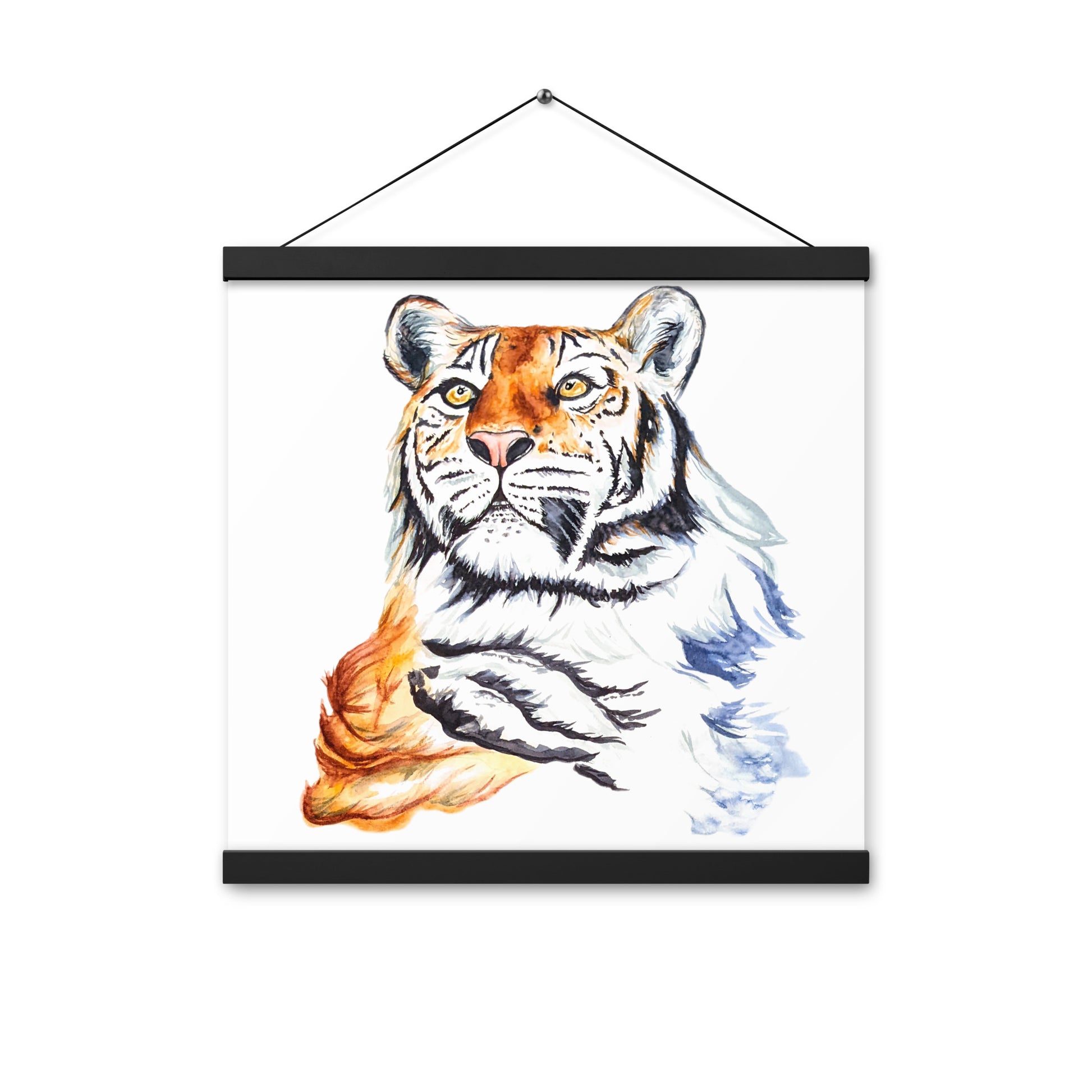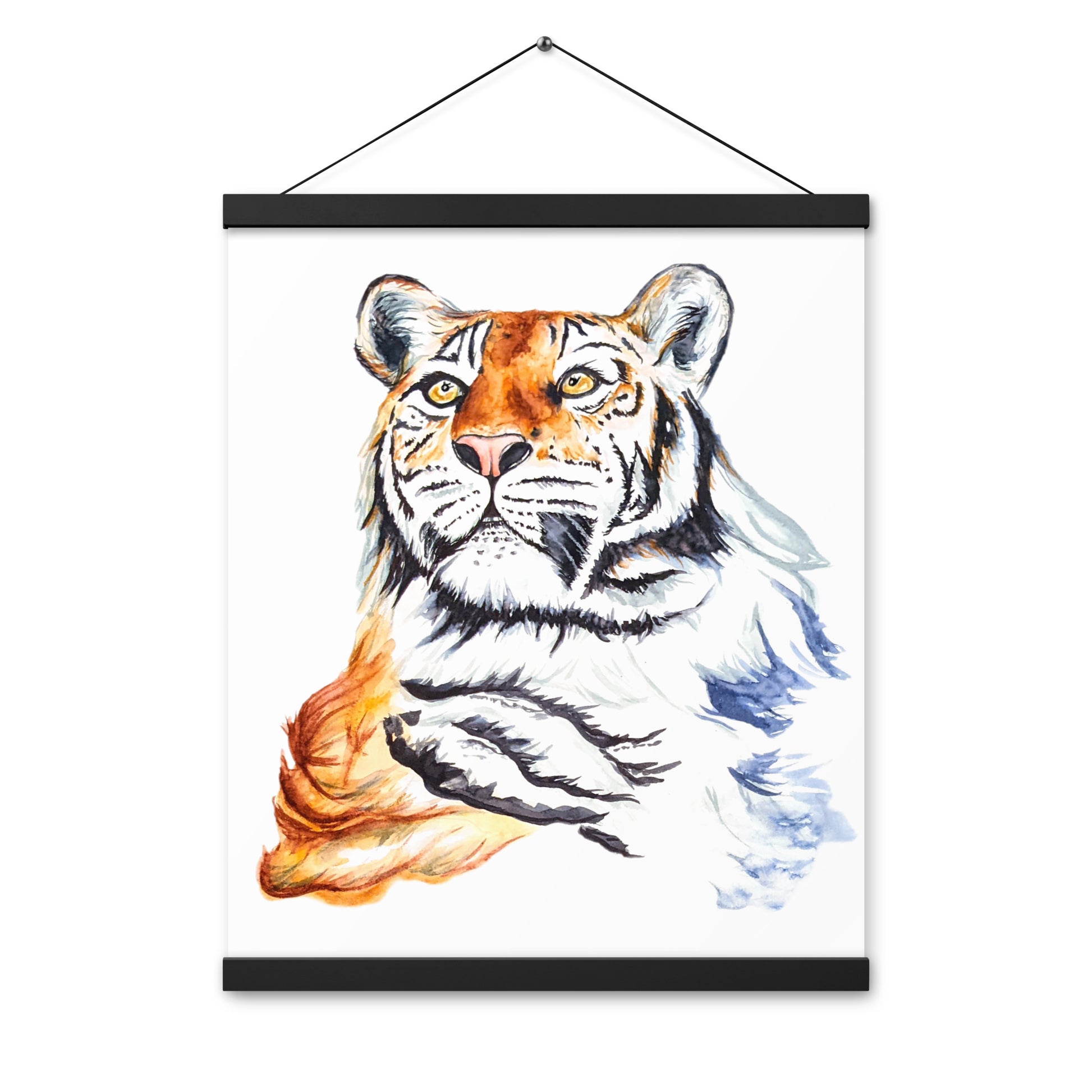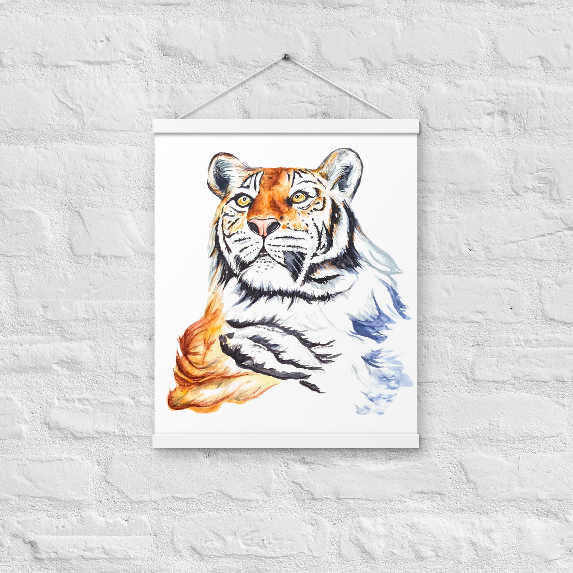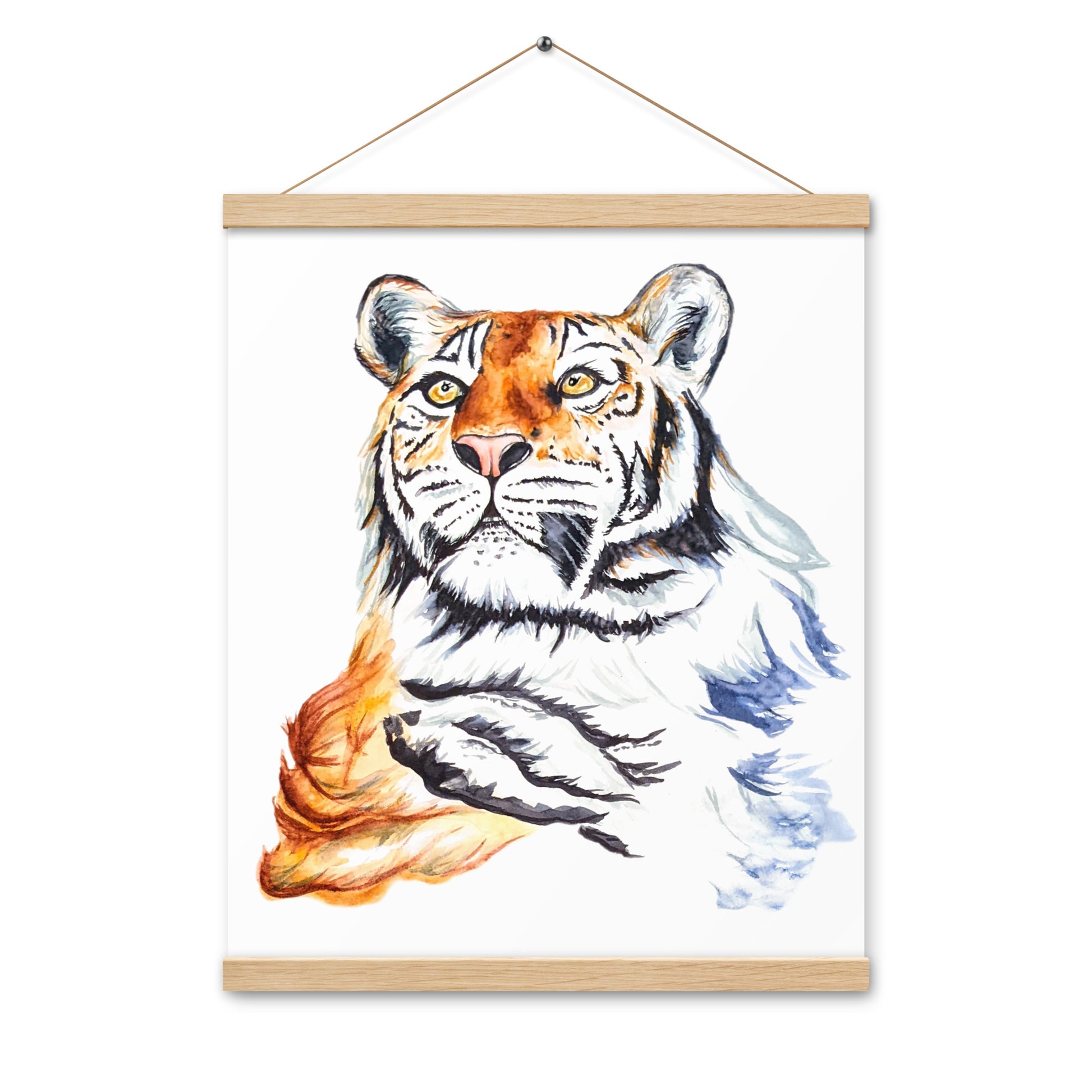 Enhance your interior decor with our majestic watercolor tiger painting. This captivating piece of jungle animal art is perfect for any interior space and baby nursery. This nature and wildlife art also makes a thoughtful gift for those born in the Chinese zodiac year of the tiger.